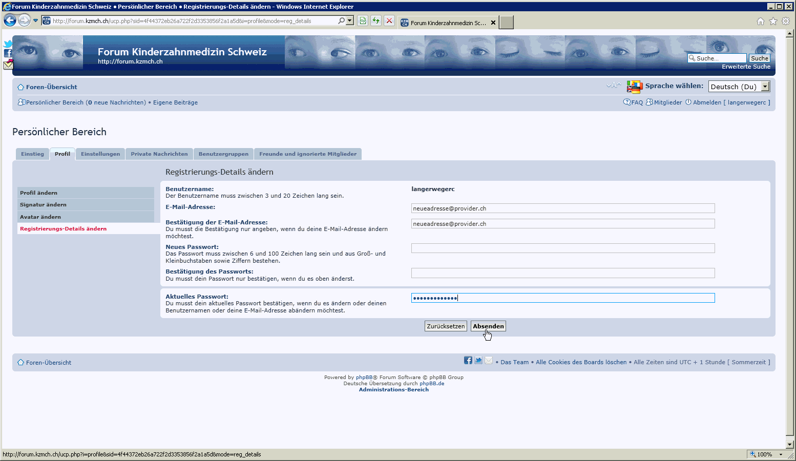 Ich habe eine neue e-Mail-Adresse und möchte diese im Forum verwenden.